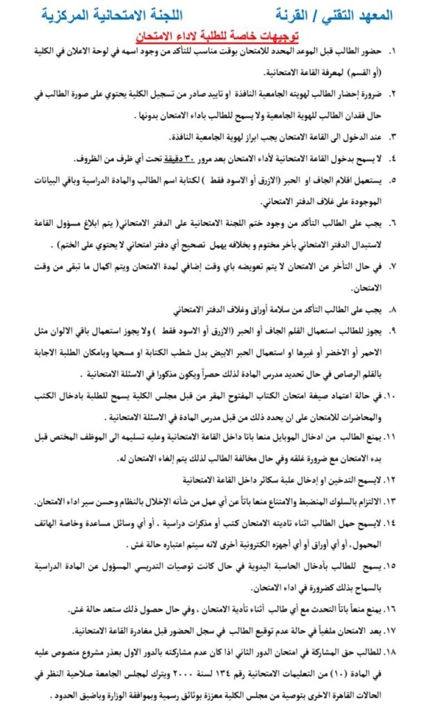 التعليمات الامتحانية