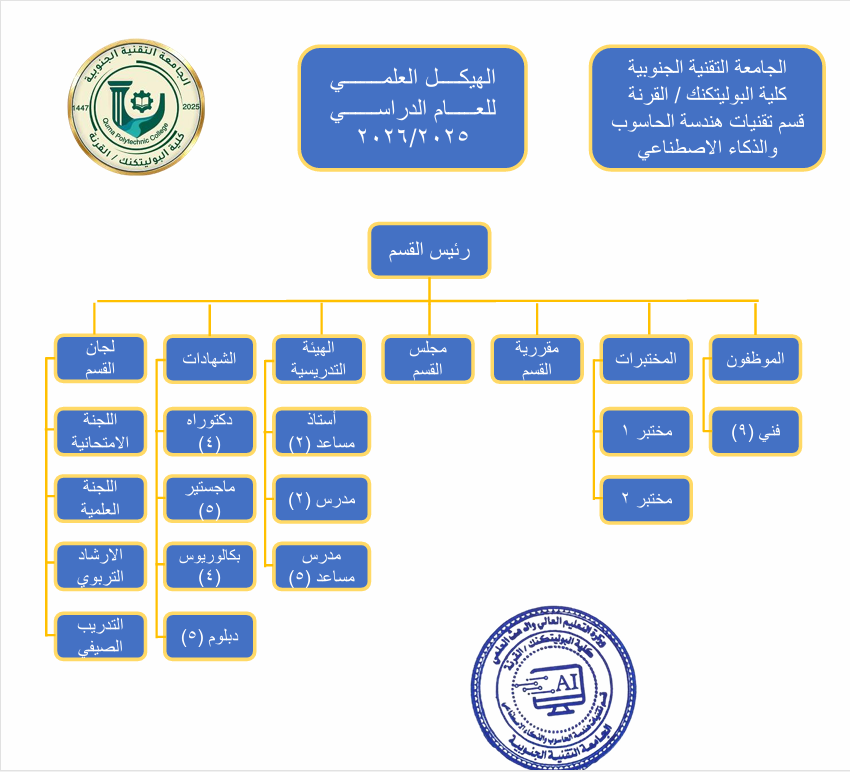 يسرني أن أرحّب بكم في الصفحة الخاصة بقسم تقنيات هندسة الحاسوب والذكاء الاصطناعي في كلية البوليتكنك/ القرنة،